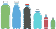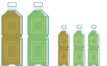 PETボトルはお茶やジュース、ミネラルウォーターなどの清涼飲料、しょうゆやお酒類などに使用されています。 加工しやすいので、用途にあわせたデザインやサイズが豊富にそろっています。