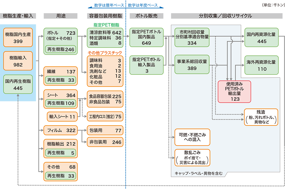 - ○指定PETボトル国内製品・輸入製品:PETボトルリサイクル推進協議会