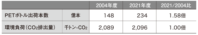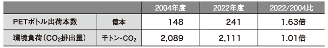 また、その原油採掘からボトル製造・供給に至るまでのCO2排出量は、2,361千トンと同1.13倍でした(表2)。