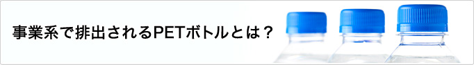 家庭から排出されたPETボトルは原則として容器包装リサイクル法に基づき市町村が分別収集を行いますが、事業系PETボトルは使用済みPETボトルを事業者自らの責任でリサイクルを行います。
