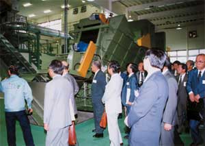 | 1993年にはPETボトル協議会が民間企業と合弁で、日本初の本格的再商品化施設・ウィズペットボトルリサイクル株式会社を栃木県に建設しました。 以後数年にわたるPETボトル協議会の多くの会員会社、技術陣の努力により、数々の技術的困難を解決しました。 2001年度では、PETボトル再商品化施設は全国で51社70施設※3)にまで増えています。 技術面ではPETボトル協議会の技術委員会が直接技術的改良、改善に当たったほか、減容機(ボトルプレス機)の開発にも関わってきました。 当推進協議会は、リサイクルしやすいPETボトルづくりのために「自主設計ガイドライン」を関係業界として制定するなど、リサイクルシステム全体についてさまざまな活動を行ってきました。 さらに広報活動として、市町村、消費者向けに各種の広報ツールを提供することなどにより、広くPETボトルリサイクルへのご協力を呼びかけてきました。 |