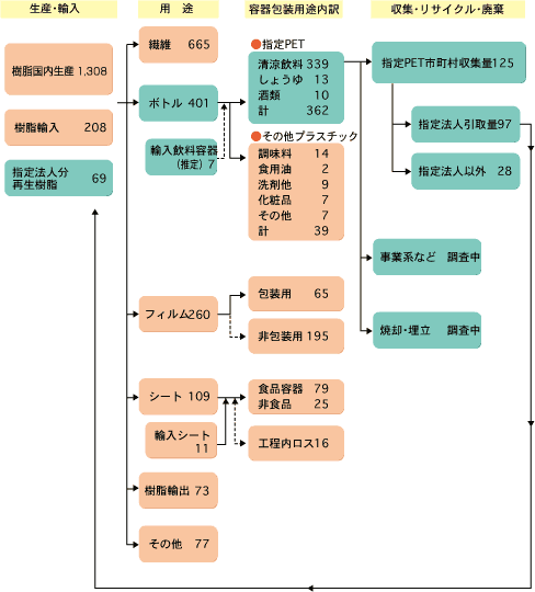 | ●PET樹脂のマテリアルフロー(2000年度) | |||||||||||||||||||||||||