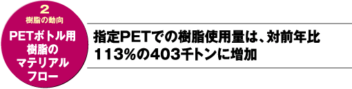 ボトル用途の中では、指定PETが対前年比113%の403千トンで、その大半は清涼飲料用(同112%の381千トン)となっています。