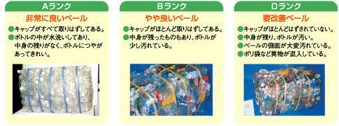 評価ランクは「PETボトルベールの検査方法」に基づく判定結果による。判定方法は2000年度から検査項目の評点合計によりランクづけするなど若干変更。 |