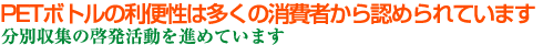 推進協議会は、PETボトルを永久的に再利用できる化学分解法によるボトルtoボトルを実質的なリユースまたはモノマーリユースと位置づけて開発・実用化を支援し、清涼飲料製品として上市されました。 |