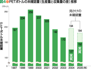 事業系回収量の控除は2001年以降で、その量は以下の通り 2001年:16千トン、2002年:32千トン、2003年:55千トン、2004年:81千トン、2005年:97千トン |