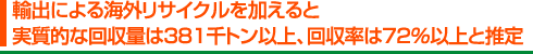 今後も推進協議会は、実質的な回収量、回収率を捕捉するための輸出量調査を継続していきます。 |