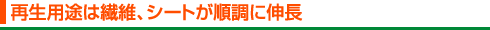 シート製品は主に卵パックや果物、カップめんなどの仕切トレーあるいは文房具などとして利用されています。繊維製品についで利用されており、全体の41%を占めています。 |