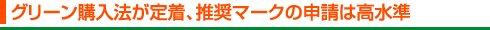 グリーン購入法(国等による環境物品等の調達の推進等に関する法律) : この法律は、国等の環境負荷の低減に貢献する製品(サービス)を積極的に購入することを義務づけるものです。国等とは国会、裁判所、各省庁、独立行政法人などを指します(地方自治体には努力義務)。2000年5月に制定され、2001年4月から施行されています。