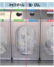 (PETボトルと缶・びんに仕切りがある新型タイプ)