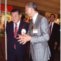 第1回3R推進全国大会へ出展。若林環境大臣[写真左]に酒巻副代表幹事[写真右]が説明。
