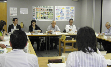 消費者・事業者のネットワーク構築の場としての交流会を実施しました。2007年度は、消費者(10名)と事業者(8名)が年4回集い、容器包装の3R推進に必要とされる情報の表現方法や発信手法等について検討を行いました。