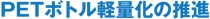 PETボトルは、容器としての需要の広がりに伴い、成形技術・充填技術の進展等により近年目覚しい軽量化が実施されています。