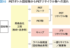 回収率の分子となる回収量B(以下記号は「5.Recycle」の図11を参照)は、環境省公表による市町村分別収集量Cと、推進協議会調査に基づく事業系ボトル回収量Dとからなっていますが、貿易統計より推計されるPETボトル輸出量を十分に包含しているとは言い難い状況が見て取れます。