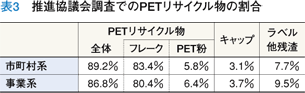 結果、国内向け回収量EとPETボトル輸出推計量Fをあわせた実質的な回収量は、549千トンとなりました。 回収物からのPETリサイクル物の割合を調査