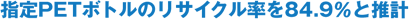 指定PETボトルの販売量Aを分母として、PETボトルのリサイクル量を分子とする指定PETボトルのリサイクル率を設定し、2008年度リサイクル率は84.9%と推計しました。(表4)