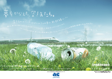 空き缶やペットボトルがリサイクルによって、新幹線の一部や乗務員の制服へと生まれ変わるという夢のある物語を通じて、リサイクルの意義を伝えます。