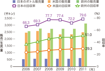 2011年度のリサイクル率の「分母」となる指定PETボトル販売量は、604千トンで、前年度比1.3%の増加となりました。