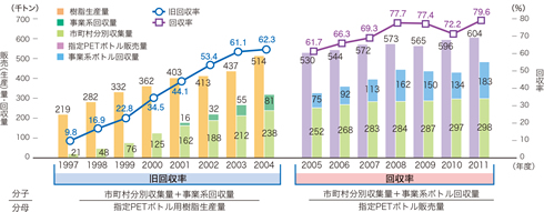 ○樹脂生産量は、指定PETボトル用樹脂の生産量。PETボトル協議会資料