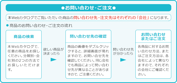 商品をお探しの際には、分類から探す 方法と 社名から探す 方法の2種類の方法からお探しいただけます。