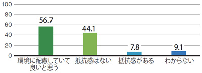 飲料用ボトルへの再利用について、概ね良いイメージだが、約1割の回答者が抵抗を感じている。