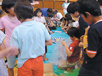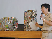 そのため、資源品を処理する施設として見学できるほかに、リサイクルについて学び、体験できる場所として、啓発施設リボン館を市民に広く提供しています。その一つの試みとして、リサイクルフェア(フリーマーケット、リサイクル家具抽選会、リサイクル工作教室、模擬店など)を開催し、楽しみながら、ごみ減量について考えてもらう機会を設けたり、リサイクル意識向上のための講座企画、教室運営、講師募集などを市民の方に委託し、事業を展開しています。これまでには、リフォーム教室、牛乳パック工作、ソーラークッキング、木工教室、家具の修理、せっけん作り、親子手作り教室などを実施し、平成14年5月オープンから平成15年2月の10ヶ月間で約8,900名の来館者を迎えています。今後もさらに多くの方に利用してもらえるよう講座・教室の種類を増やすことを検討しています。 |
