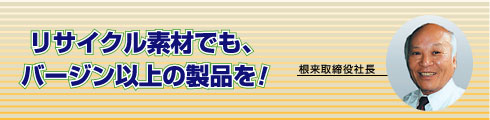 「過去2年間で3,600人の見学者がありましたが、皆さん一様に展示されているPETボトルの再利用品を見て、こんなものに再生されるのかと驚くようです」とは同社の堀場常務。さらに佐々木工場長は「“やっぱりキチンと出さないとイカンな”と言う声を聞くのが、CPRで働く者にとって一番うれしい時です」と、リサイクルの意識が定着しつつあることを喜んでいました。 |