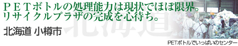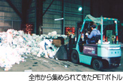 観光客でにぎわう小樽市は人口約14万5千人。PETボトル、缶、びん、紙パック、蛍光灯、乾電池を資源ごみとして収集しています。PETボトルは紙パックと同じ袋に入れて出します。PETボトルの収集は1996年からモデル事業で始め、2000年から全市で収集されるようになりました。 2001年度のPETボトルの収集量は年間約124トン、2003年度は約148トンと増え続けています。現在、PETボトルの収集は「天神リサイクルセンター」の処理能力(1日0.5トン)の関係で月に1〜2回ですが、2005年4月からは全市で週1回になります。また、可燃・不燃ごみが有料化されるので、混入していたPETボトルなどの資源ごみもリサイクルに回ってくると想定されます。 |