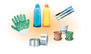 PETボトル再利用品の数は年々増えており、衣料関連、台所・清掃用品、園芸用品、インテリア品、文房具、収集・包装容器、産業土木・建築資材、梱包バンドなどに生まれ変わっています。詳しくはPETボトルリサイクル推進協議会発行再利用品カタログまたはホームページをご覧ください。 |