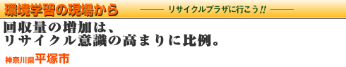 湘南の海に面した平塚市は人口25万人。1999年からPETボトルの分別収集を始めました。PETボトルはプラスチック製容器包装と同日に、週1回、単品収集されます。開始当初のPETボトルの回収量は約430トンでしたが、2004年度は約820トンと、ほぼ2倍になりました。「回収量が順調に伸びてきたのは、啓発活動と市民のご協力のおかげです」と飯田課長代理。