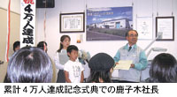 操業以来、非常に多くの市町村のPETボトルを再生してきました(累計延べ対象数:2,230市町村)。年間処理量は500mlボトルに換算して6億本以上、累計処理量は今年度計画も含め40億本に上り国内最大規模となっています。搬入されてくるベールにはラベル、キャップ、その他の異物が10%前後混入してきます。これを最新技術の一貫システムで、異物の混入率の非常に低いフレーク、ペレットに仕上げます。「バージンと遜色のないレベルにまで仕上げたい。これが目標です。品質に対してはお客様にも高い評価を頂いております。ただ、お客様に対して供給責任が果たせていない現在の原料不足現象は、再商品化事業者にとっては耐えられないことです」(鹿子木社長)。「PETボトルリサイクルには、事業者のみならず、市民、市町村の協力が不可欠です。当社では工場の立ち上げから、見学受け入れを前提にラインや施設をレイアウトして、積極的に市民や子供たちを受け入れています。皆さんには、リサイクル品=品質が悪い、という先入観を今日から忘れてください、と言っています」と鹿子木社長。2005年5月には、北九州市観光協会から「観光功労者賞」を受賞。取材に伺った日に見学者が累計で4万人を突破しました。市民に対する啓発も着実に実を結んでいます。