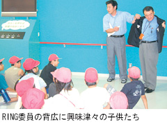 “恒例”になった当協議会委員による背広や、ネクタイなどのPETボトルの再生品の説明には、「ヘェ〜」と驚き、興味津々の様子で聞いていました。