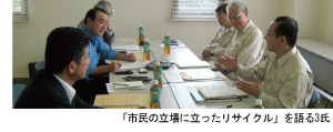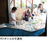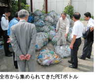 市のごみ分別は9種12品目。2006年度のPETボトル回収量は477トン。全量が指定法人ルートへ引渡されています(以後も、指定法人ルートへの引渡しを続ける予定)。市内を23の地域に分けて、各地域に月1回、専用収集車で単品収集をしています。ベール品質はつねにAランクです。「キャップを取って、きれいに洗って排出するようお願いしています。ラベルに関しては特に指示していません。(財)日本容器包装リサイクル協会の引取り基準をもとに市民の方々が排出しやすいよう考え、現在の方法になりました。」という田中氏です。