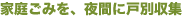 「夜間戸別収集は昭和30年代から行っておりますが、メリットとしては、道路事情を考慮した収集効率と町の美観アップです。ライフスタイルが夜型の人、朝、ごみの出せない方にとっては便利になったと思います。想定外としてはカラスの被害も少ないこともあります。デメリットとしては収集作業員への負担が大きいことや収集時の騒音と、市民の目がごみに向きづらい、ということでしょうか。それでも夜間収集のほうがメリットがあると判断して継続しています」。