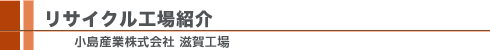 1951年創業の小島産業株式会社は、毛布の製造業からスタートし、培ったノウハウと技術力で今日に至っています。滋賀工場ではPETボトルのフレークを破砕、洗浄し異物混入率の非常に低い、高品質のフレークに仕上げています。(なお、兵庫県にある篠山工場では、滋賀工場で製造されたフレークから繊維(綿)を製造していますので、小島産業(株)は、「再商品化事業者」であると同時に「再生樹脂利用事業者」でもあります。)