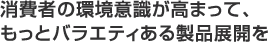 現在はエコ商品に限らず、小ロット多品種を要求されるので、工場では一度に多様な商品を製造しています。製造段階で出た不良品などは同じ敷地内にあるリサイクル工場で、粉砕・成型し、再利用します。 エコ商品に関しては消費者の認識は個々に異なります。ゴミ箱はエコ商品として認識されているので「再生材を使ってほしい」という要望がありますが、たとえばプランターなどの園芸用品は「再生材を使用しています」といっても、消費者にはなかなか伝わらないのが現状です。「まだまだ、どの分野の商品でも価格優先で選ばれることが多いです。再生PET樹脂製品のニーズが少ないということは、他の製品への展開ができないということです。消費者の環境に対する意識がもっと高まってほしいですね」と久保田氏は語ります。