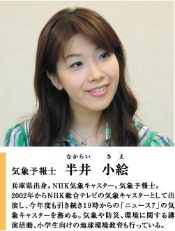 半井 違いますね。台風が近づいてきたり、災害が起こりそうなとき、気象予報士はその情報に集中しますが、明日が穏やかな日和と思われる場合は、「この時期の歳時記をとりいれようか」という人もいれば、「明日は久しぶりに晴れです」という風に、晴れ・雨カレンダーを作って見せる人もいるでしょう。風流な感じにしたければ、「アジサイが色づいてきました」と言って、しとしと雨が降っているお寺の映像を出して、“明日はこんなに風流な映像ではないかもしれませんが、久しぶりの日差しがまぶしそうです・・・”というような方に結びつける。人それぞれ、いろんな見せ方ができるんですよ。