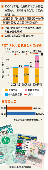 では何故昨年になって集積所回収が加わったのでしょうか。これには、区長会での「可能な限りPETボトルを集めていきましょう。」という決議も影響していますが、集積所回収を希望する区民の皆さんの声が大きかったことにその理由があるようです。