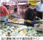 世田谷区では、主に店頭から回収されたものを処理する「叶L和運輸」と主に集積所から回収されたものを処理する「品川運輸梶vの二つの中間処理施設で、PETボトルを処理しています。前者のPETボトル処理施設は高効率ラインの設置によって僅か6人で処理作業が進められる設計となっている点が、後者においては、毎日30分間清掃の時間をとって施設内を常に清潔に保つとともに、騒音や臭いが外に出ないように配慮している点が、大きな特徴と言えます。両社とも、様々な努力と工夫を積み重ねて、使用済みPETボトルの品質向上に努めています。