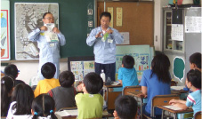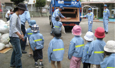 店頭回収だけの時代には、夏場には回収量が60%増しになったこともあるようですが、集積所回収が加わった現在の年間総回収量がどの程度になるかは、まだ回収量のピークと考えられる夏場を経験していないので、想定が難しいようです。回収されたPETボトルの品質については、「店頭回収は、とても綺麗です。区民の皆さんの意識の高さがはっきり現われています。」と胸を張ります。ただ集積所回収については、「残念ながらPETボトル以外のものが混じっている場合もあって、異物除去のための中間処理に手間がかかります。」とコメント。そして「それだけに区民の皆さんに対しては、ぜひ適正なかたちで出していただくよう、これまで以上に強く呼びかけていきます。環境学習のほかチラシやハンドブック等の配布も十分に活用しなければなりません。」とのこと。「そのためには、PETボトルがきちんとリサイクルされているかどうかを、区としても十分に確認していきたいのです。」と付け加えます。また、子供向けの環境学習にも熱心に取り組んでいます。「毎年60ヵ所位の小学校や保育園などに清掃事務所の職員が出向き、ごみ減量・リサイクルの環境学習を行っています。啓発活動は大切な要素ですから、今後も積極的に推進していきます。」と普及啓発担当の荒井係長は語ります。