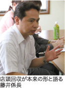 世田谷区では、店頭回収と集積所回収の二つの手法によって使用済みのPETボトルを回収しています。とは言え、集積所回収は2008年10月に始まったばかりで、まだ1年にもなりません。それ以前の1997年7月から2008年9月までは、コンビニやスーパー等の量販店を拠点とした店頭回収だけでPETボトルを回収してきました。事業計画担当の藤井係長によると、「私は、販売した店が回収する店頭回収が、<拡大生産者責任(EPR)>の観点から見て、それが本来の姿であると考えています。」とのことです。