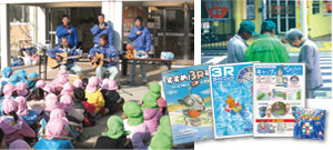 市では、“市民同士のコミュニケーション”を推進しています。2004年10月からスタートした“ごみ減量推進員制度”では、市内の小学校区ごとに推進員1名と推進協力員を複数名配置し、校区のリーダー、および地域と行政をつなぐパイプ役として、地域のごみ減量、分別の徹底や、集団回収の推進など行っています。