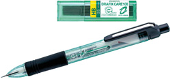 PETボトル再利用品を発売したのは1997年。当時は再生樹脂を使った商品の開発は、今ほど積極的に取り組まれてはいませんでしたが、容器包装リサイクル法やグリーン購入法の枠組みが徐々にできつつあり、環境配慮型商品に注目が集まり始めた時期でした。限りある資源をわが社でも有効活用していきたいという考えのもと、「エコロジー商品」の開発に至りました。PETボトル再利用材料を選んだ理由は巷に溢れそうな材料で、容リ法が施行されることで回収も進んでいくという考えから。もともとバージンPETボトル材をキャップに使用した商品を生産していたこともあり、技術面には自信がありました。しかしながら、黄ばみや白濁の発生、寸法が出ないなどバージン材とは勝手が違う面も。樹脂の品質の見直し、除湿乾燥機の導入など、様々な試行錯誤を経て発売された商品は、ゼブラ株式会社のエコロジー商品の象徴である「CARE FOR NATURE」のキャッチコピーと共に商品名にも環境に配慮する「CARE」を取り入れ、「ジムニーケア」と名付けられました。発売後にPETボトルリサイクル推奨マークを取得。「身近なPETボトル商品が身近であるボールペンになることはインパクトがあるようで、説明してお客様が感動している様子を見ると、PETボトル再利用材料を使ってよかったなと思います。」と南方氏。現在は「SK-シャーボケア+1」と「ドラフィックスケア」の2種類を販売。開発時の思いは「CARE」の中にしっかり受け継がれています。
