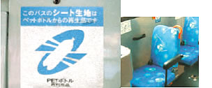 親会社である京急グループでは2002年から環境に配慮したPETボトルの再生生地をバスのシート地に採用。500mlPETボトル約18.4本からシート1脚分がつくれるのです。現在では京急グループのバス全車両のシート地に導入済です。