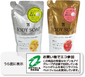同社は、小売業で初めて「PETボトルリサイクル推奨マーク」を取得した環境配慮型詰替パウチ商品の発売を、プライベートブランド「セブンプレミアム」から開始しました。2014年8月から詰替用ボディーソープの2アイテムを、12月には詰替用ハンドソープを発売しています。パウチのフィルムには、店頭から回収した使用済みPETボトルをリサイクルした“メカニカルリサイクルPET”が中間層に使用されています。「推奨マーク」を取得した3アイテムは、グループ会社4社から全国に展開されています。マークの取得はニュースリリースの他に、社会見学者用の冊子「社会と共に」、CSRレポートでの環境負荷の低減へ向けた取り組みとして広く紹介されています。「販売した製品の使用済容器を店頭で回収して、商品化につなげていけるような取り組みを今後も強化していきたいと考えています。」と小峰氏です。推奨マークの取得は、“メカニカルリサイクルPET”フィルムを使用したパウチを供給する凸版印刷(株)からの提案によるものです。