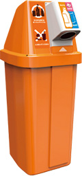 清涼飲料水の自動販売機の横に設置しているリサイクルボックスで、今年秋、初の業界統一仕様としてオレンジ色の新機能リサイクルボックスが登場します。
