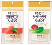 より環境負荷を小さくするため、資源循環の発想から、使用済みPETボトルが原料となった再生プラスチックの活用も推進しています。外装フィルムに再生プラスチックを約15%使用した「キユーピー ドレッシング スティックタイプ」を2020年2月中旬出荷分から採用。これにより、石油由来原料やCO2排出量を削減することが可能となります。また、「キユーピー テイスティドレッシング」シリーズのボトルにも再生プラスチックを使用。こちらは2021年6月下旬出荷分からの採用となっています。