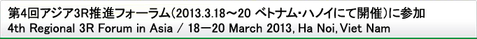国連地域開発センター(UNCRD)、開催国政府機関とともに環境省が毎回主催者となっている、第4回アジア3R推進フォーラム(2013年3月18日~20日にベトナム・ハノイにて開催)2日目の連携に関する討議を行うラウンドテーブル4にて、発表する機会を得ました。