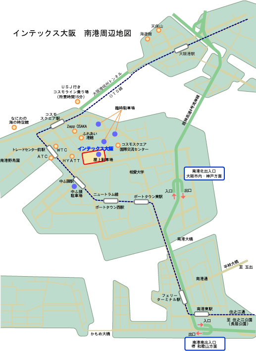 地下鉄(中央線)よりOTS「コスモスクエア」駅乗り換え、ニュートラム「中ふ頭」駅下車が便利です。